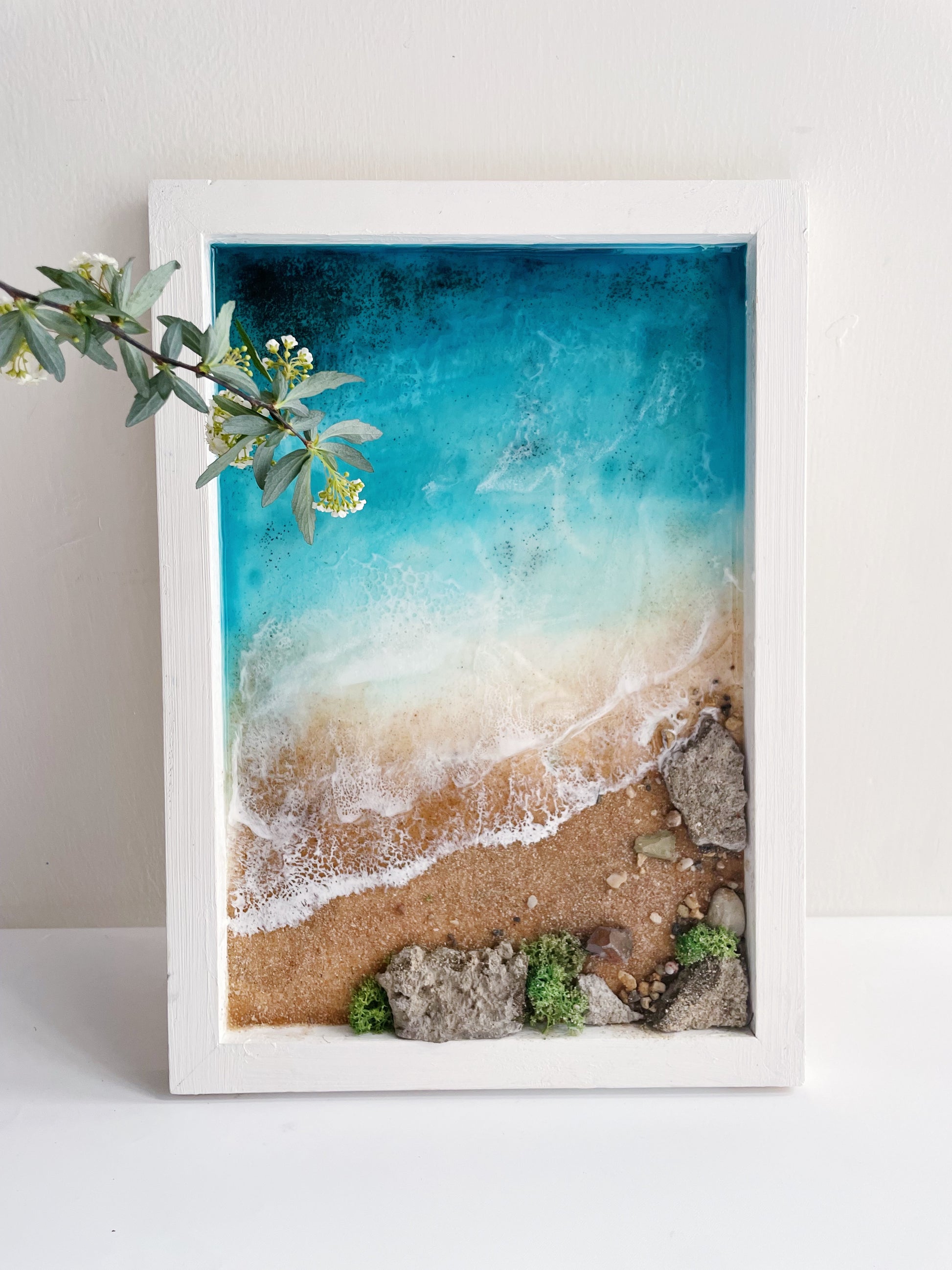 This Landscape Ocean frams is custom-made by Vicky and features a unique original composition. This canvas is available in various sizes and is perfect for adding an artistic touch to any room. For larger custom sizes, contact us directly. This canvas is custom-made within 15-60 days, depending on the current materials and order quantity. Adorn your space with the exquisite beauty and calming relaxation of an ocean-inspired